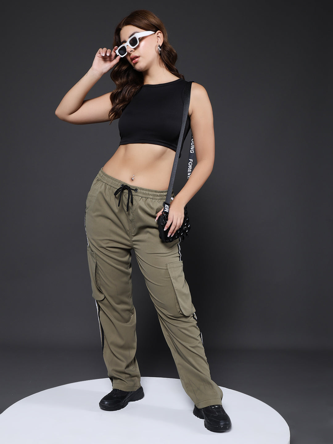 Women Utility Cargo - Olive Green Reflective Stripes