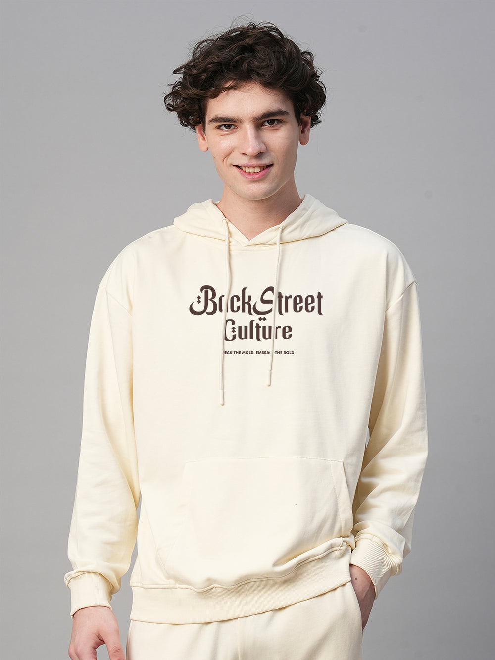 Shop men drop shoulder premium terry hoodie online from Pronk. Available in S, M, L, XL sizes. Check out vast collection of hoodies at our website. Explore trendy design with off white color combination from Pronk.