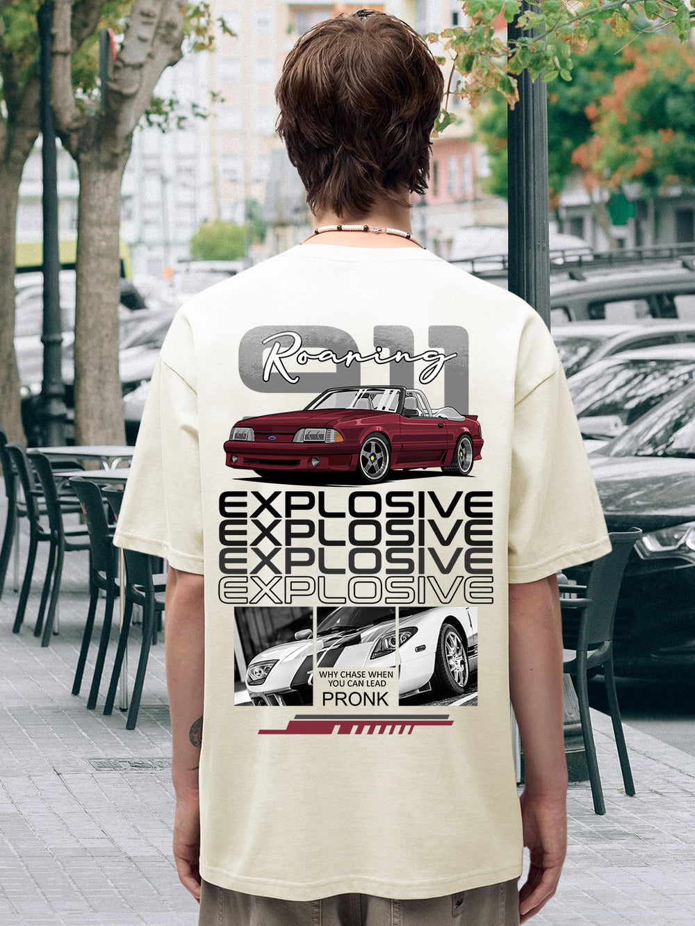 Explosive Roar Car Men Oversized Terry Graphic T-Shirt