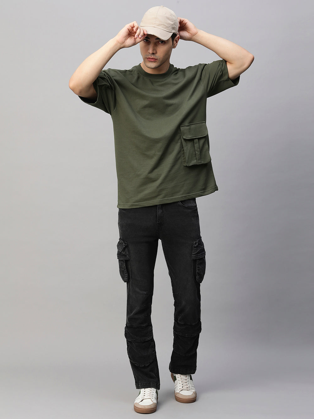 Cargo T-Shirt For Men - Olive Green
