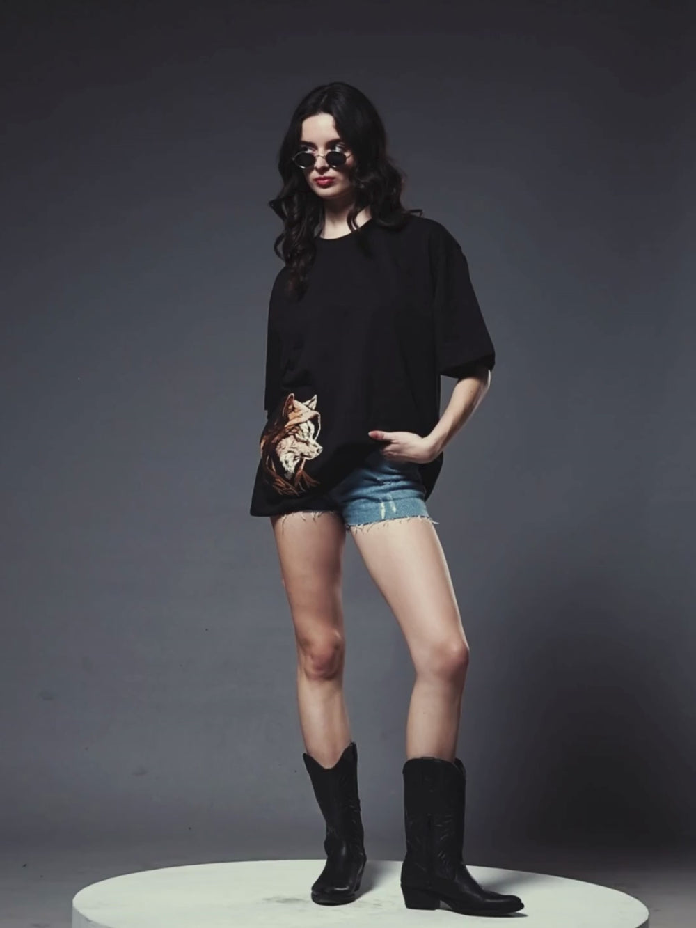 Buy a premium Wolf Embroidered Oversized T-Shirt at Pronk. Available in XS, S, M, L, XL, and XXL sizes. Explore the latest trendy designs in women's oversized t-shirts. Shop online now!