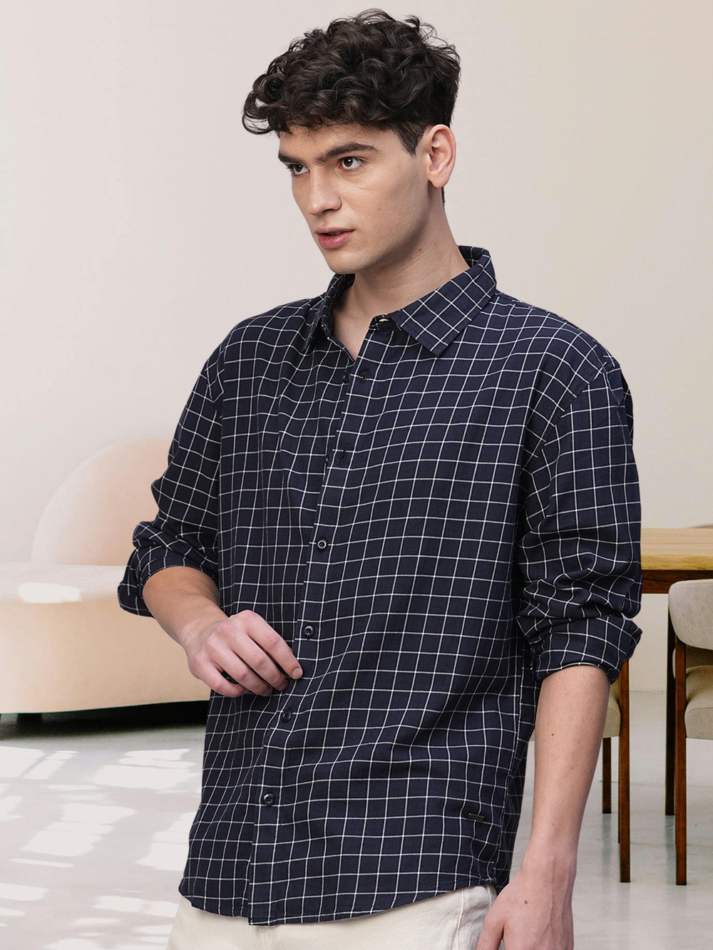 Get the premium Pronk men full sleeve check shirt in dark navy color available in S, M, L, XL, XXL. Explore wide range of Men's shirts online at best prices on Pronk.