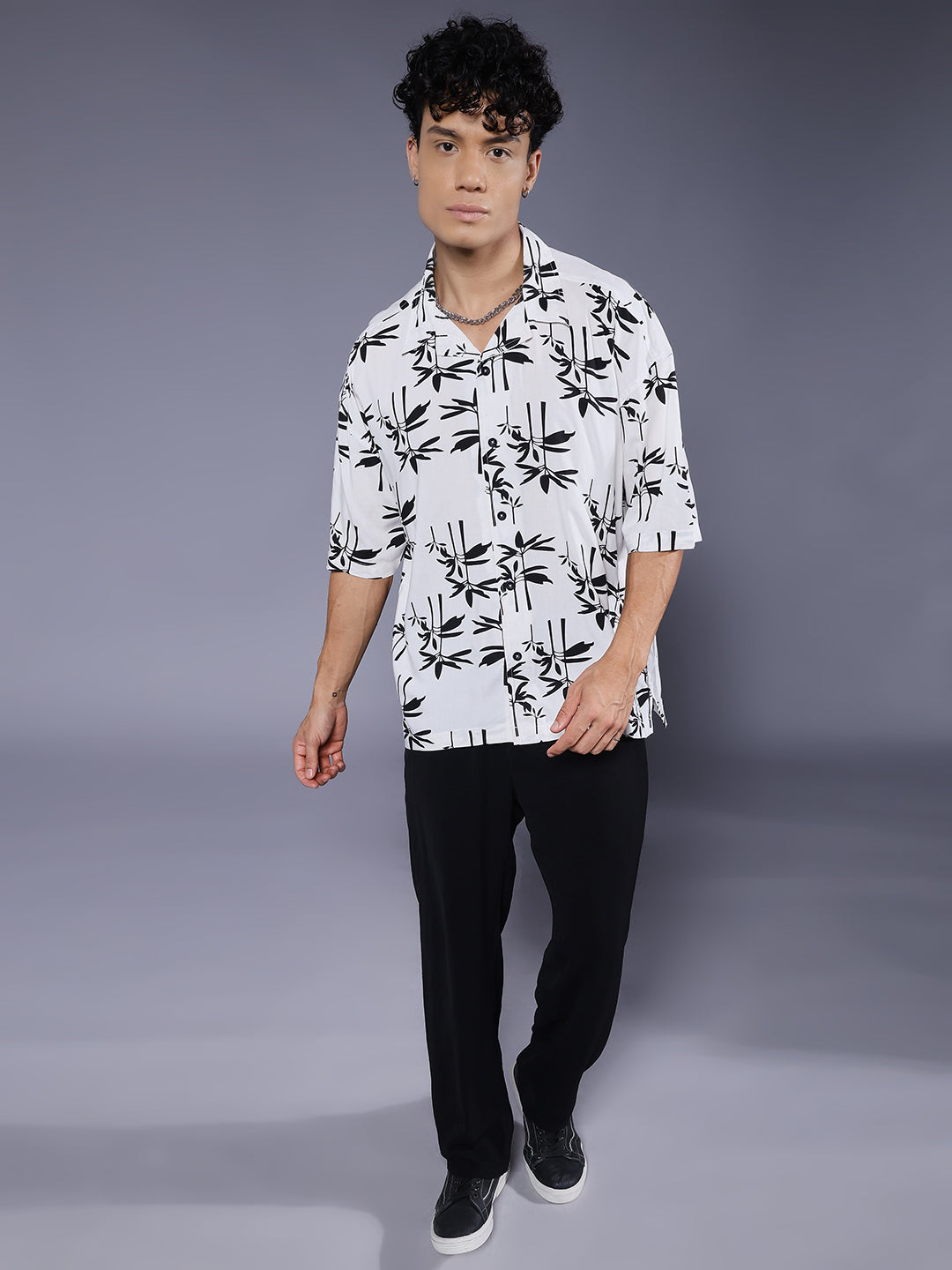 Stay cool and stylish with white half sleeve shirt for men featuring relaxed fit and bold abstract design. Made from soft rayon fabric. it is perfect for casual wear or summer outings.