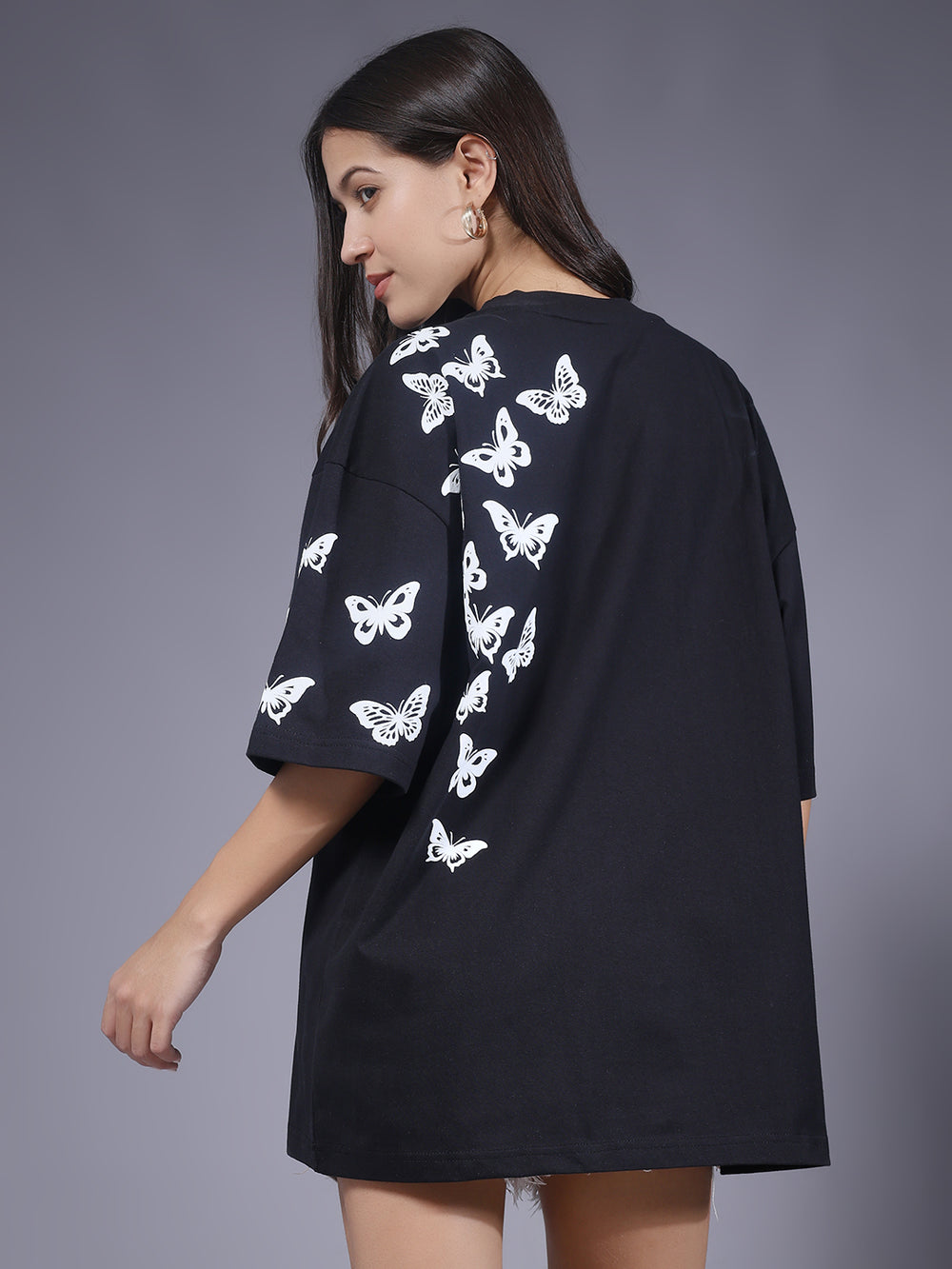 Butterfly Puff Print Women's Oversized T-Shirt. Get ready to stand out in this Pronk t-shirt! Made of 100% cotton, this oversized tee offers ultimate comfort and style. Available in xs, s, m, l, xl, xxl sizes. Explore more latest trendy designs from women's topwear. Buy online now!