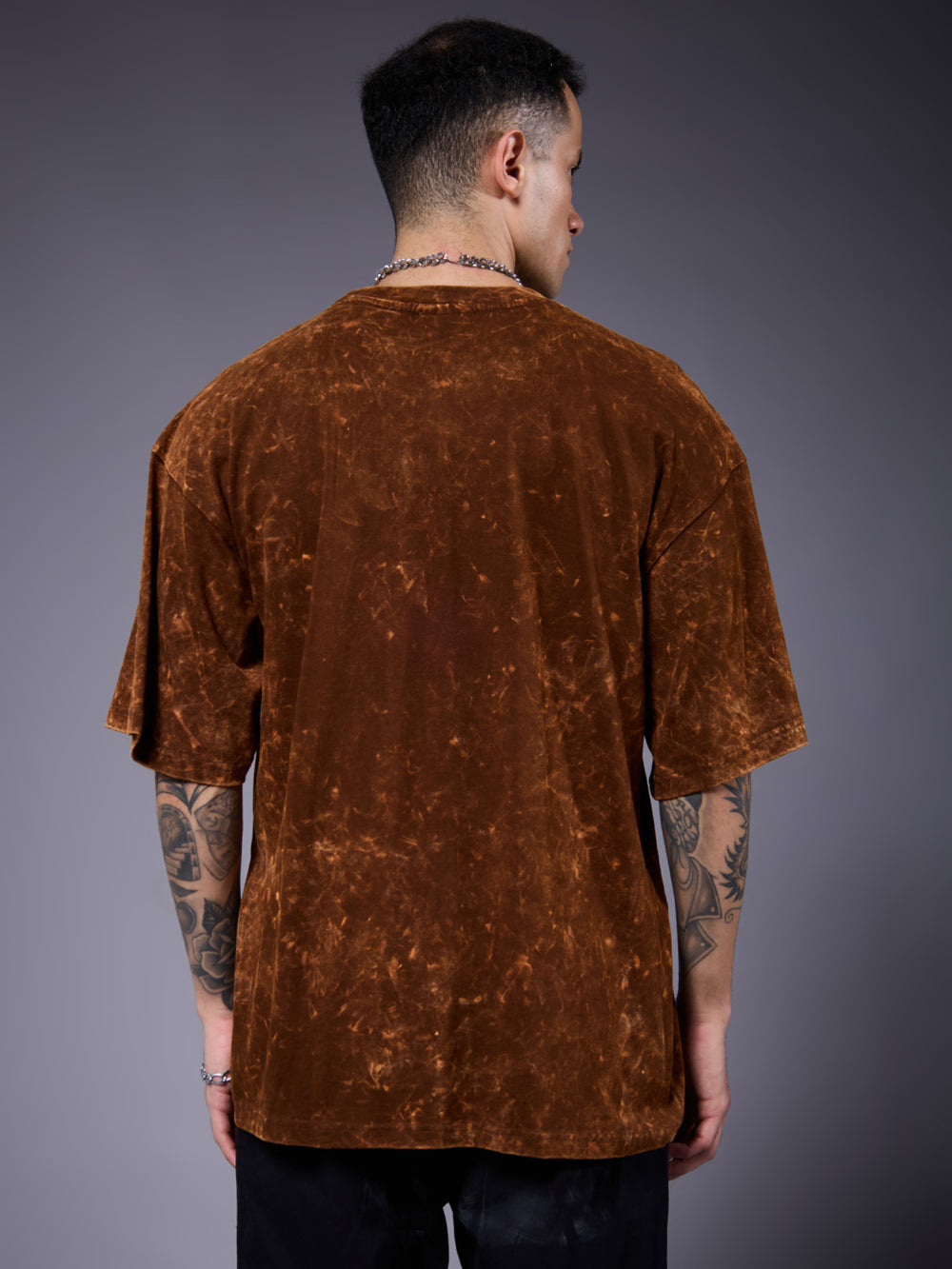 Trendy Brown retro wash oversized t-shirt designed for comfort and streetwear look. Perfect for casual all-day wear.