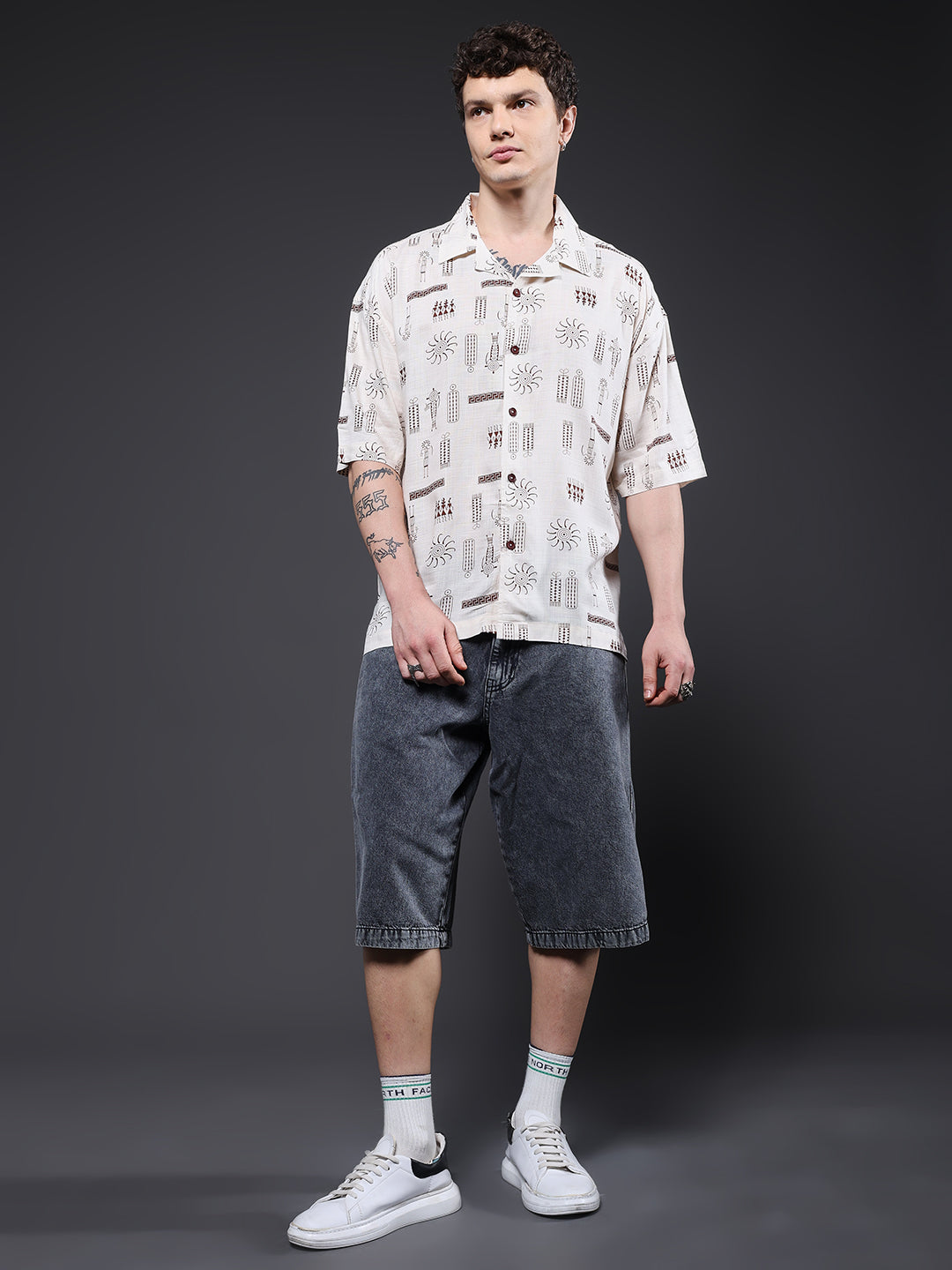 Stay cool and stylish with brown half sleeve shirt for men featuring relaxed fit and bold abstract design. Made from soft rayon fabric. it is perfect for casual wear or summer outings.